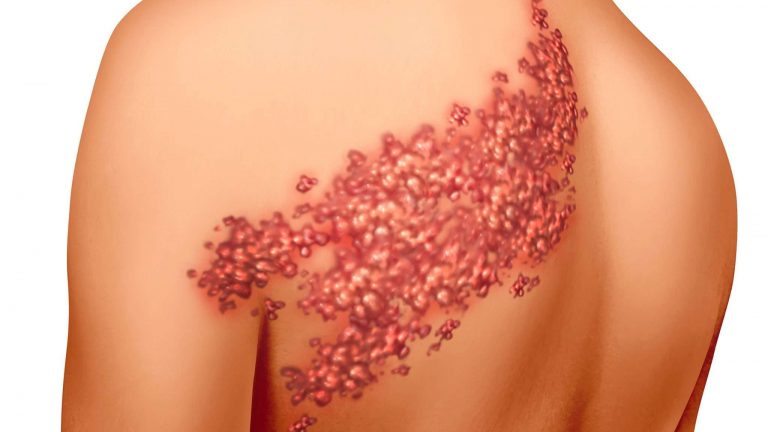 - إصابة الجلد حيث يحدث الطفح الجلدي.