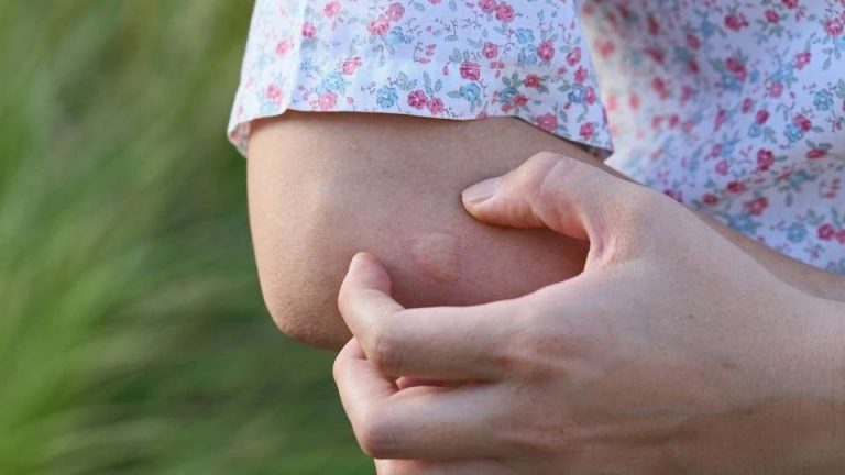 عندما لدغ البعوض، يتم حقن إفرازاتها في الجلد. المطبات الحمراء هي رد فعل الجسم لهذه العملية.