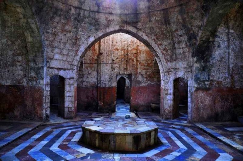 تم حفظ المكان جيدا حتى اليوم، مغطى بالكامل ببوابات مزخرفة يصل عدد إلى أربعة عشر واحدة، كما يضم قبه زجاجية ضخمة تحوي ثقوب، وتسمح بوصول الضوء إلى المسبح والنافورة.