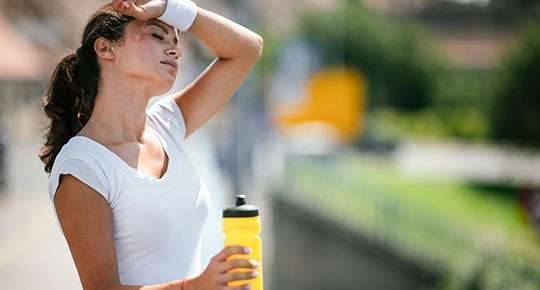 - تصبا بالجفاف بعدم شرب كمية كافية من الماء لتجديد السوائل المفقودة من خلال التعرق