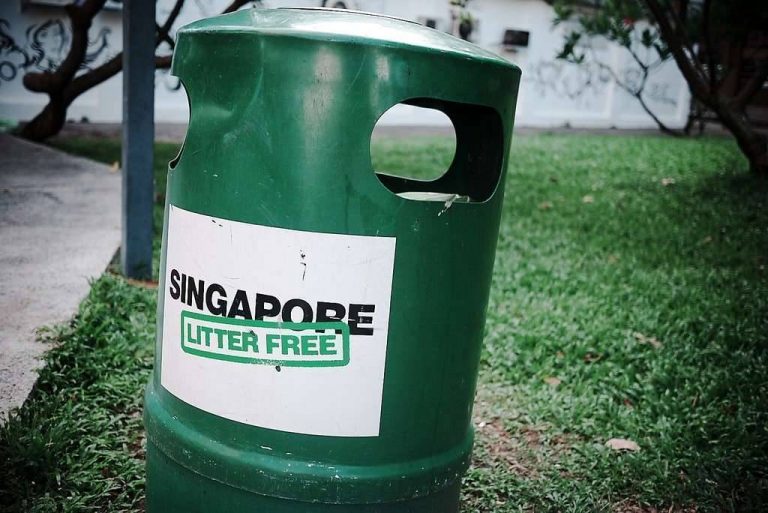 تشتهر سنغافورة أيضًا بقوانينها الصارمة الخاصة بالقمامة والبصق في الشوارع والتخريب والإراقة العامة التي قد تؤدي إلى غرامات باهظة و / أو عقوبة تسمى “Correctionive Work Order”، حيث يُطلب من الجناة التقاط القمامة في الأماكن العامة وهم يرتدون سترة ساطعة .