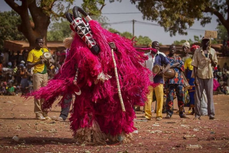 جنازة Fête des Masques Bobo-Dioulasso: ترافق مجموعات رقص من رجال محليين يرتدون أقنعة خشبية رائعة.
