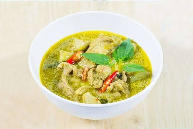 لن تكتمل قائمة الطعام التايلاندي دون الكاري الأخضر التقليدي أحد أكثر ما تشتهر تايلند في الأكل. يتميز الكاري الأخضر بالدجاج بحليب جوز الهند الغني والفلفل الحار الطازج والباذنجان المستدير.