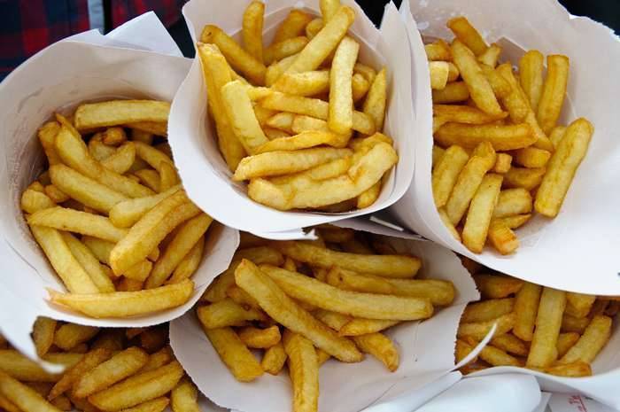 أولاً يجب أن تكون البطاطا نفسها ناعمة ولكن الأهم من ذلك، يجب أن تقلى البطاطا الطازجة مرتين؛ أولاً عند درجة حرارة منخفضة لطهي الطعام في الداخل للحصول على تناسق ناعم ورقيق وثانيا بسرعة عند درجة حرارة أعلى لطهي الخارج إلى الكمال مقرمش.