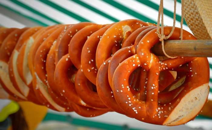 Brezel هي عجائن بيضاء ناعمة مصنوعة من ماء الدقيق والخميرة ورشها بالملح (وأحياناً بذور مختلفة). من الرائع تناولها كطبق جانبي أو وجبة خفيفة، خاصة مع البيرة الألمانية القوية. من الرائع تناول الطعام كطبق جانبي أو وجبة خفيفة، خاصة مع البيرة الألمانية القوية. إنهم موجودون في كل مخبز وفي الشوارع، ويباعون عاديين ومقطعين بالزبدة أو مع شرائح من اللحوم الباردة أو الجبن.