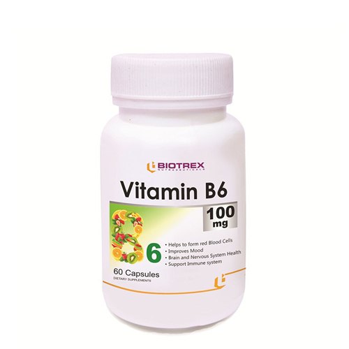 يوجد فيتامين ب 6 في العديد من الأطعمة، ويضاف إلى الأطعمة وهو متاح كمكمل غذائي. يستخدم الفيتامين لعلاج نقص فيتامين B6 والوقاية منه والذي يمكن أن ينتج عن بعض الأدوية أو الحالات الطبية أو سوء التغذية. فيتامين ب 6 قابل للذوبان في الماء، مما يعني أن الجسم لا يخزنه.