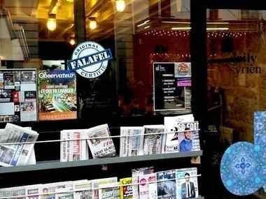 يمكنك تناول شطيرة ضخمة من الحمص، والفلافل، والباذنجان المشوي، والقرنبيط، ورقائق البطاطس مقابل خمسة يورو.