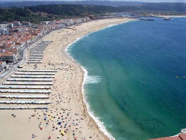 يطل شاطئ نازاري على الساحل الفضي، ويشتهر بأمواجه العالية الآخاذة.
